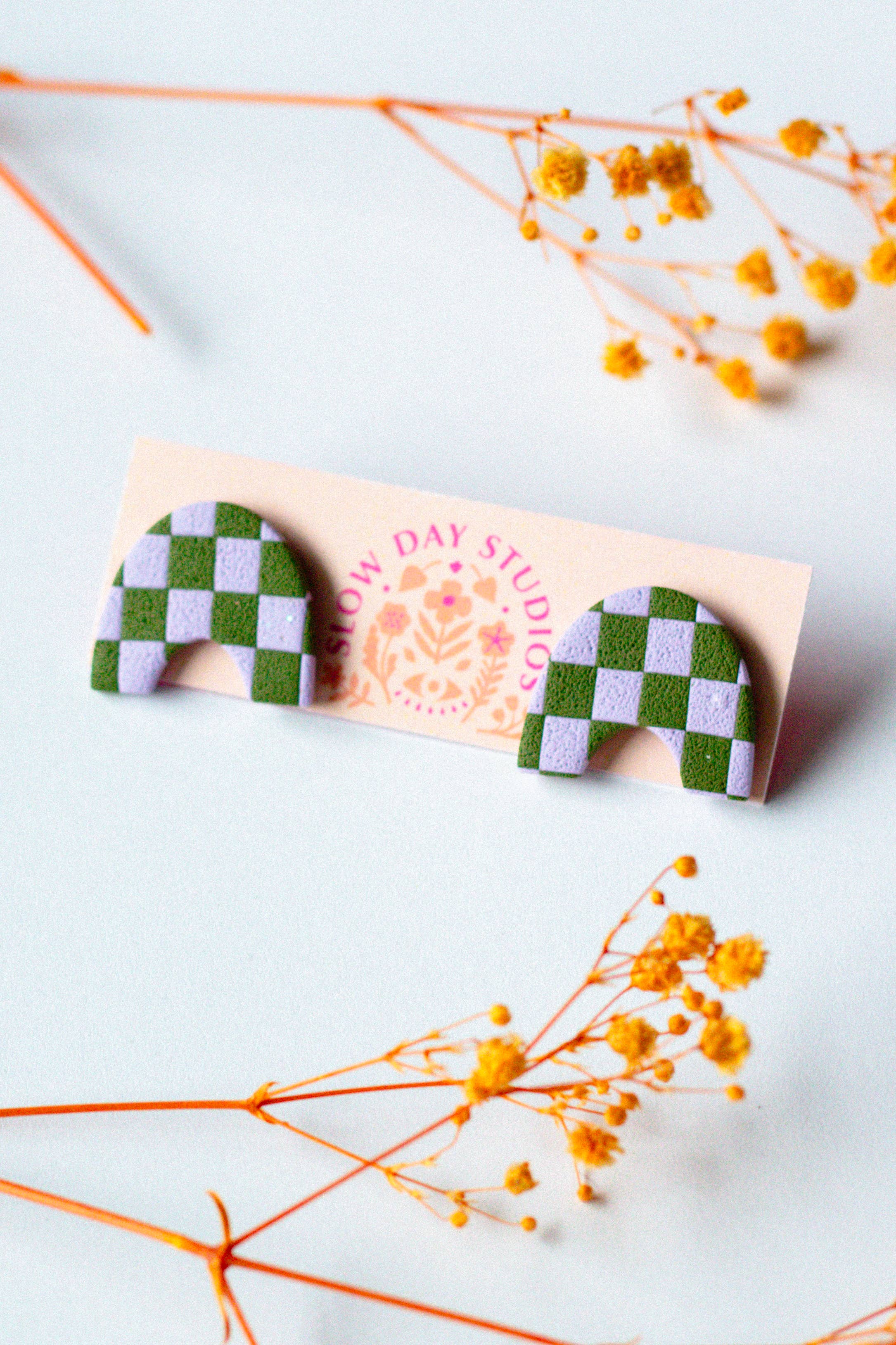 Slow Day Studios - Clou à damier en pâte polymère vert olive et violet